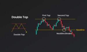 Double top is a popular chart pattern which is used to identify potential trend reversal. It is identified when the price of an asset shows two consecutive peaks at the same or similar level. This pattern is considered to be a sign of bearish reversal, as the asset’s price fails to break above the previous peak. The double top chart pattern is made up of two peaks with a valley in between. The peaks signify a resistance level, meaning that the asset’s price struggles to break through it. The valley between the two peaks is called the “neckline”, and when the price of the instrument breaks below this neckline, it is seen as a signal of the reversal pattern. The double top formation is generally preceded by an uptrend, and it marks the point of exhaustion of the asset’s buyers. As the buyers are unable to push the price higher, sellers will take control of the trend and push the asset’s price lower.