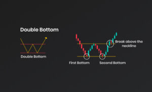Double bottom is a technical chart pattern used by traders to predict a bullish reversal in the instrument’s price action. The pattern is composed of two consecutive troughs that form a “W” shape on the chart. The first trough marks the bottom of the instrument’s previous trend, while the second trough marks the bottom of the new trend. In between the two troughs lies a peak, which marks an uptrend that is likely to follow. The double bottom pattern is identified by traders when the instrument’s price action reaches the second trough and begins to rally. It is considered an indication of strength when the security’s price breaks out of the pattern to the upside.